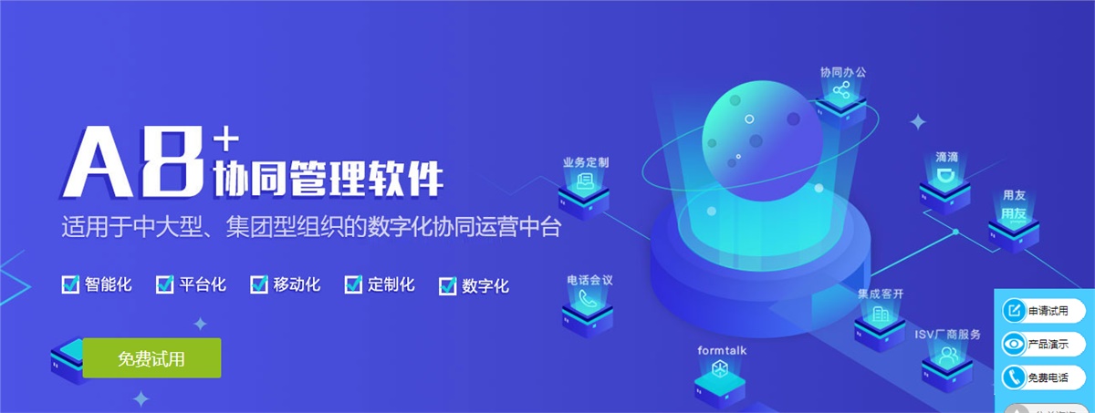 致遠(yuǎn)協(xié)同管理軟件A8+-V7.1,是面向中型、大型、集團(tuán)型組織的數(shù)字化協(xié)同運(yùn)營(yíng)中臺(tái)。