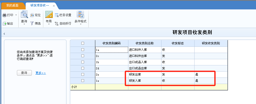 設(shè)置研發(fā)出入庫(kù)收發(fā)類別,按照收發(fā)類別取研發(fā)的領(lǐng)料和入庫(kù)數(shù)據(jù)。