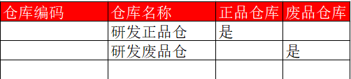 設(shè)置哪些倉(cāng)庫(kù)是研發(fā)正品倉(cāng)庫(kù),廢品倉(cāng)庫(kù)。產(chǎn)成品入庫(kù)按照研發(fā)是否成功進(jìn)入不同倉(cāng)庫(kù)。