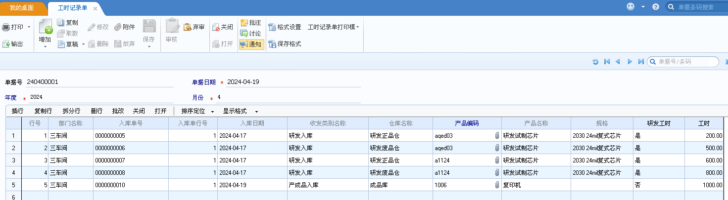 來(lái)源:產(chǎn)成品入庫(kù)工時(shí),取產(chǎn)成品入庫(kù)單上字段或手工導(dǎo)入。