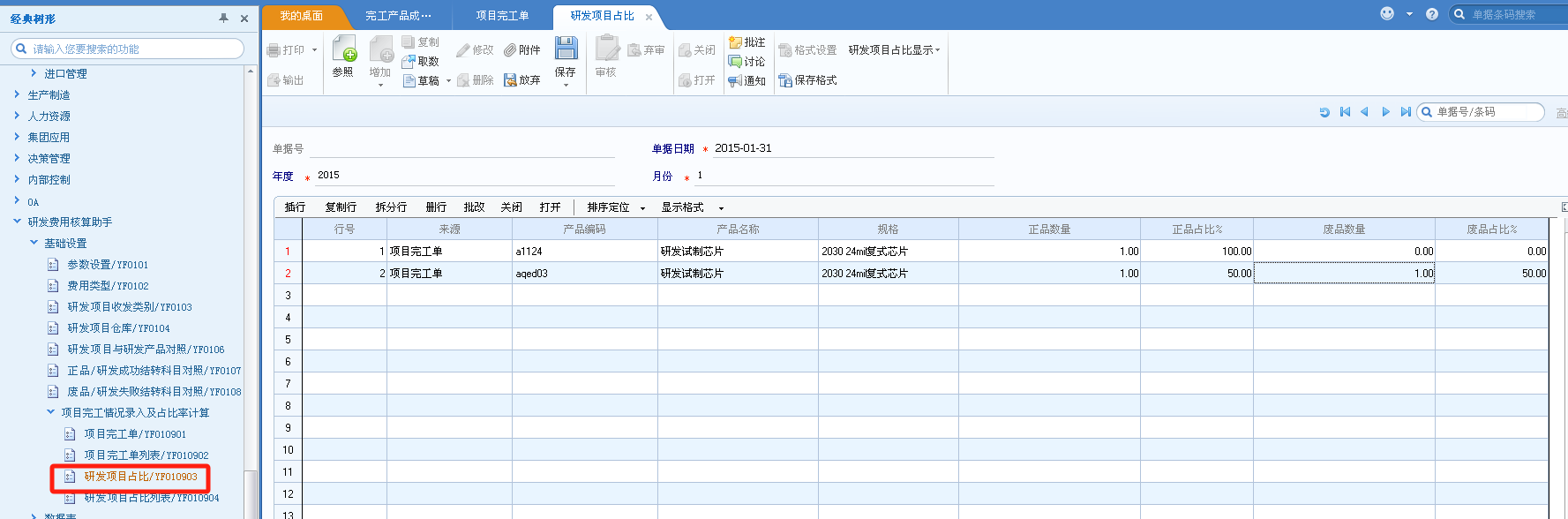 將費(fèi)用從產(chǎn)品結(jié)轉(zhuǎn)到項(xiàng)目,解決客戶一個(gè)項(xiàng)目有多個(gè)產(chǎn)品需要手工統(tǒng)計(jì)的情況,剝離生產(chǎn)經(jīng)營(yíng)費(fèi)用與研發(fā)費(fèi)用,研發(fā)成功與失敗產(chǎn)品分開(kāi)核算,減少人工工作量。