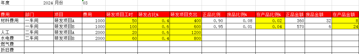 以項(xiàng)目維度計(jì)算正品、廢品、在產(chǎn)品占比.