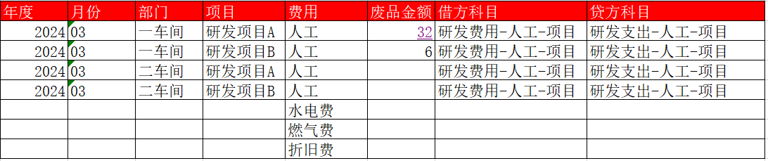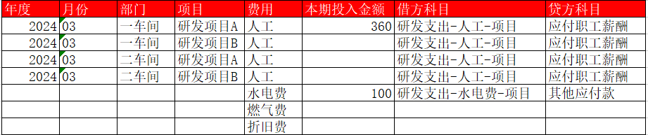 憑證示例:借:研發(fā)費(fèi)用-人工-研發(fā)項(xiàng)目A 32