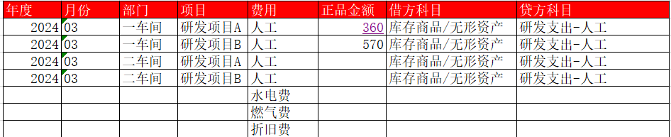 借:研發(fā)支出-人工-項(xiàng)目A 360